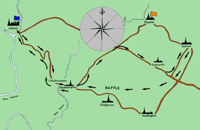 Rupert's army of over 2,000 men marched out of Oxford heading to Chiselhampton Bridge. It consisted of 500 musketeers, 500 dragoons and 1,000 cavalry comprising of three crack regiments and the Prince's Lifeguard.